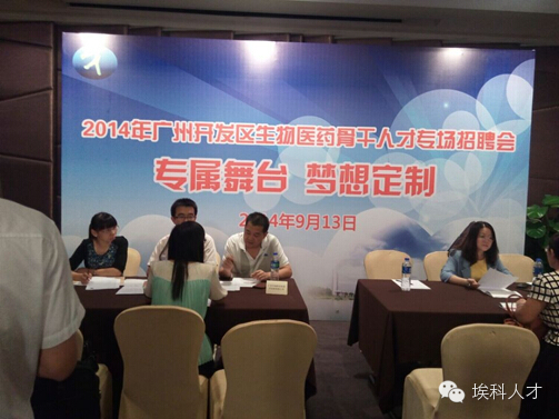 2014年9月13日,由广州开发区人才交流中心主办、广州埃科人才研究所(以下简称埃科人才)参与协办的“广州开发区生物医药骨干人才招聘会”在广州市建国酒店隆重举办。